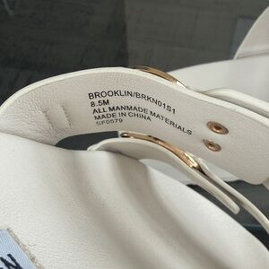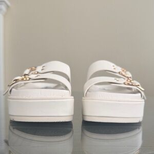 Steve Madden Brooklyn Platform Cream Sandals with Gold Buckles. Womens Size 8.5