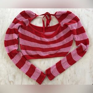 Style/Description: Girlypop striped crochet sweater, features a stylish tie back.