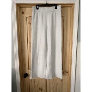 UGG Women's Fuzzy Knit Pants Wide Leg Cream White Elastic Waist Cozy Large FLAW