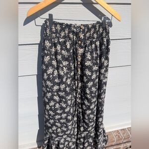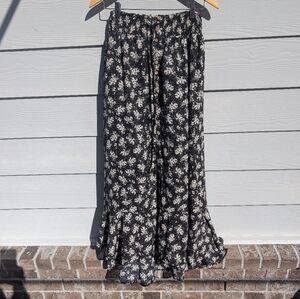 Promesa Skirt Black Size S Floral Maxi High Waist Elastic Buttondown Ties Flowy
