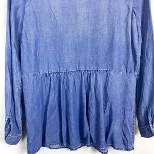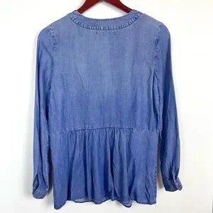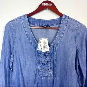 NWT Saks Fifth Avenue Chambray Lace Up Peasant Style Blouse Blue Women's Size XS