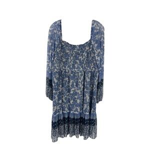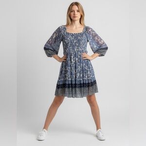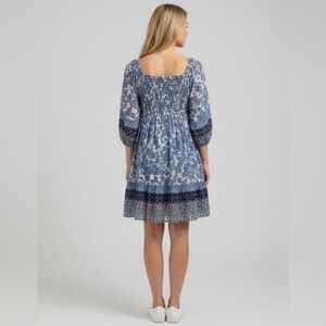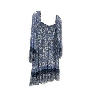 Taylor shirred Babydoll tiered flowy dress Baloon Sleeves blue & white floral 16