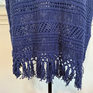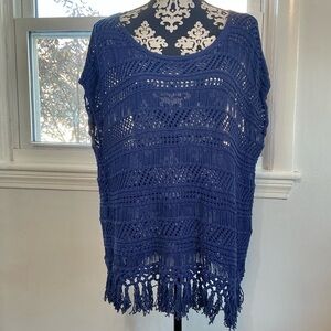 C. Wonder Boho Blue Crochet Open Knit Fringed Hem Tunic Top Size 1X EUC