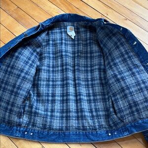 Vintage Carhartt Blue Denim Flannel Lined Trucker Jacket Made in USA J11DST