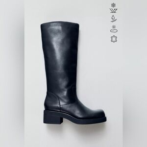 NWT ZARA REAL LEATHER Moto Boots Rounded Square Toe Water Repellent Size 8/38