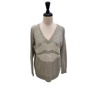 Lauren Moshi Beverly Hills Women's V-neck Cashmere Lips Pullover Sweater Gray XS