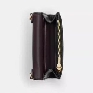 Coach Mini Envelope Wallet Croc Embossed Leather with Strap in Black NWT