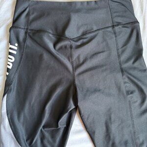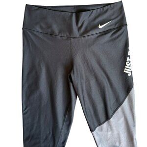 LARGE Womens Nike Power Team Victory Just Do It Black Gray Leggings