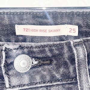 Levi's 721 High Rise Black Gray Majorly Distressed Skinny Jeans