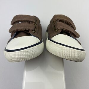~ Tommy Hilfiger Kids Sneakers 7 Brown Canvas Rubber Hook & Loop Blue ~