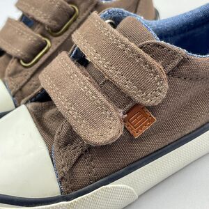 ~ Tommy Hilfiger Kids Sneakers, US size 7. Brown/blue canvas upper, white rubber outsole.