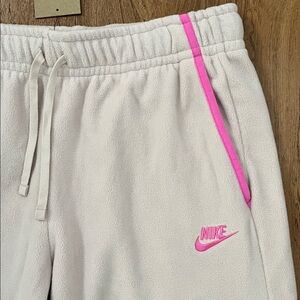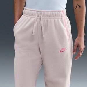Nike Sportswear Club Fleece pants with an elastic waistband and drawcord. Side pockets. Lightweight fleece is brushed on both sides for all-around fuzzy comfort while the standard fit feels relaxed through the seat and thighs. Embroidered logo. Wide leg. Approx 31 inch inseam. New with tags!