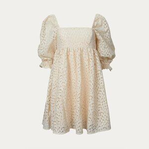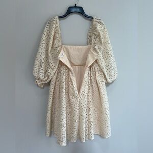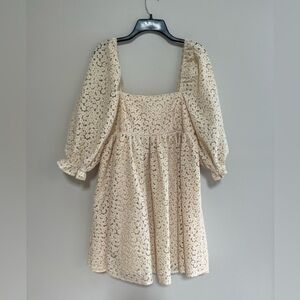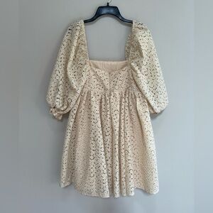 Storia Crochet-Lace Baby Doll Mini Dress in Vanilla/Cream, size M