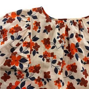 Beautiful Elizabeth and James floral blouse made from 100% cotton. Features a flattering smocked bust, soft ruffled cuffs, and a flowy, feminine silhouette. The cream base with rust orange and navy floral print gives this top an elevated boho, cottagecore-inspired feel that works across multiple seasons.