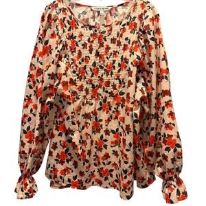 Elizabeth and James Floral Boho Cotton Blouse Smocked Top S