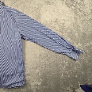 Eton Men's XL Blue Striped Dress Shirt French Cuffs Contemporary Fit LS SEE DESC