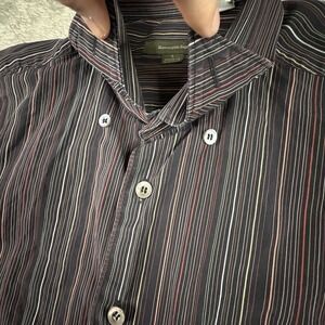 CONDITION - Very Nice pre owned shirt. No Stains, rips, or holes. All buttons and stitching intact. Hidden button down collar. Very nice Multicolor striped pattern. A few Shades of Red/Pink with a White & Gold stripe Elite product from well known Italian Designer Brand! Must Have Addition to your wardrobe!