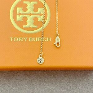 Tory Burch Gold Necklace with Blue Hexagon Pendant