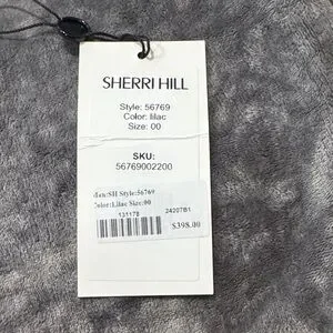 Chic lilac dress by Sherri Hill. Ideal for elegant events. Height of girl in photo is 5’3”. Worn once!