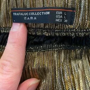 Trafaluc Collection by Zara Metallic Gold Lame Crinkle Slim Midi Skirt large