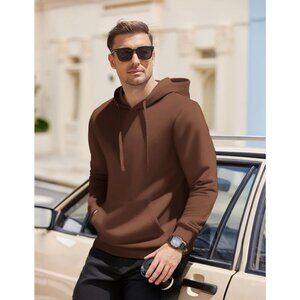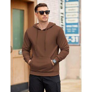 Coofandy Men Brown Pullover Long Sleeve Drawstring Gym Hoodies Sweatshirt