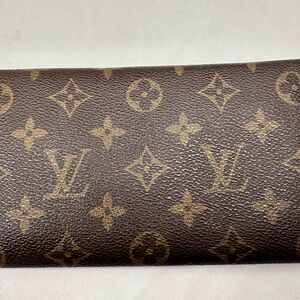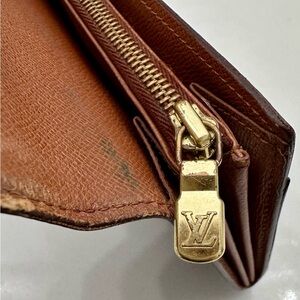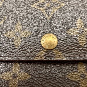Keywords: LV monogram, designer wallet, luxury accessory, coin purse, card holder, travel wallet, fashion accessory, French designer, canvas wallet, snap closure, zippered pocket