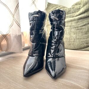In good condition. Barely worn. Shiny black puffer ankle booties.