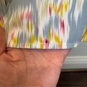Pinch Multicolor Watercolor Floral Midi Dress Size Large. In good preworn condition. Puff sleeves, keyhole front with button closure, side ties that cinch waist, tiered design. Approximately 19” from pit to pit and approximately 48” from shoulder to hem. Some stitching call outs on the hem as shown in last pics.