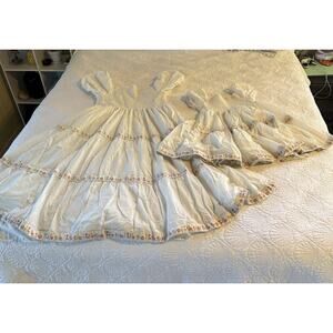 Rachel Zoe Mommy SZ 12 And Me SZ8 White Smocked Tiered Maxi Dress Floral Ribbon