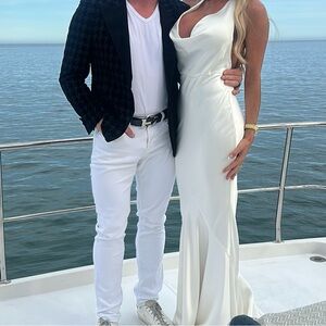 Elegant white maxi dress. Halter neckline. Sleek and stylish design. Worn once and it’s stunning on!