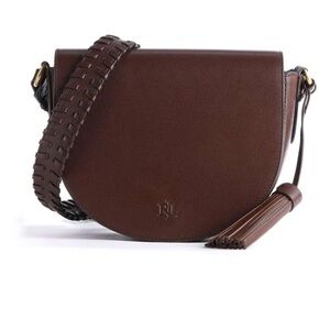 medium Witley crossbody bag from LAUREN RALPH LAUREN featuring brown, calf leather, cotton, tassel detail, curve-edge body, embossed logo to the front, tonal stitching, front flap closure, antique-effect hardware, whipstitch detailing, main compartment, internal zip pocket and internal logo plaque.