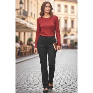Keywords: Anne Klein, women's pants, black trousers, bootcut, career wear, business casual, faux leather trim, stretch fabric, office attire, classic, smart casual, sophisticated