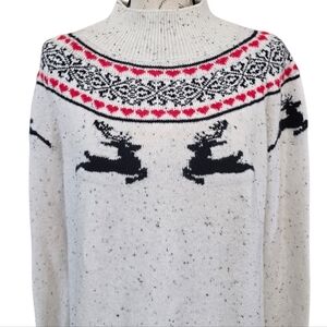 Loft Fair Isle Reindeer Winter White Mock Neck Long Sleeve Knit Sweater L