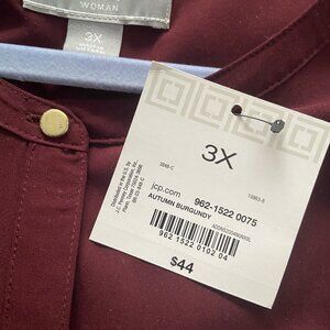 Liz Claiborne ~ Tunic Popover Top ~ 3/4 Sleeve ~ Burgundy ~ 3X ~ NWT
