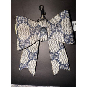 Handmade GG Monogram Bow Keychain Charm Beige Navy authentic canvas used