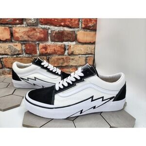 The product is a pair of Vans Old Skool Bolt Shoes in a two-tone black and white colorway, specifically designed for men in size 7 (UK size 6). This casual sneaker features a lace-up closure, suede upper material, and belongs to the Vans Old Skool product line. The model is the Old Skool Bolt, known for its stylish design and unique toning feature. Perfect for those looking for a fashionable and comfortable shoe option.