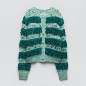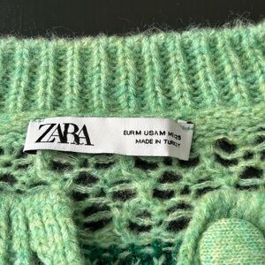 Zara Sz M Green Crew Neck Wool Blend Knit Jacket