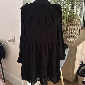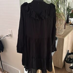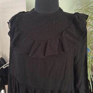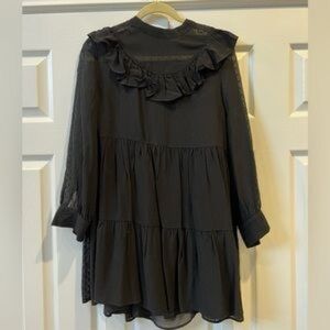 Zara Black Ruffle Sheer Shift Dress with Lining and dotted detailing