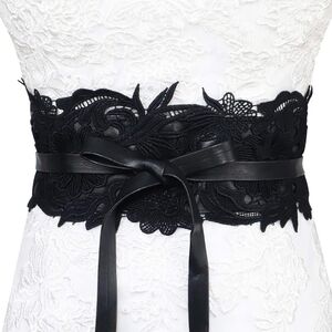 Womens Faux Leather Lace Wrap Around Obi Belt Waist Boho Band Wide Belts,Black