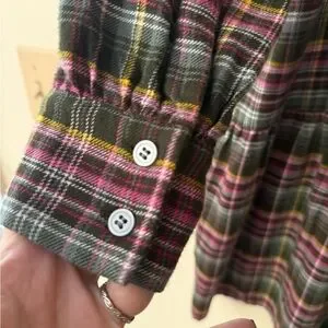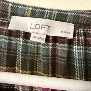 LOFT Multicolor Plaid Flounce Shirt Dress, colors green/pink/yellow, size MP