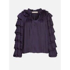 Ulla Johnson Lucy Size 6 Tiered Long Sleeve Blouse Viola Purple