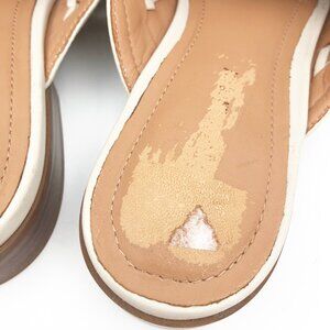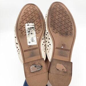 Johnston & Murphy Ali Woven Tassel Mule Bone Glove Leather. Slip on, pointed toe, low block heel, no size mark but fits like 6.5-7, some wear/peeling on insole. See all photos for condition. Smoke and pet free home.