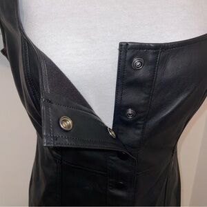Urban Outfitters dress faux leather snap closure jumper black size 6. So cute!! Pairs great with a t shirt underneath.