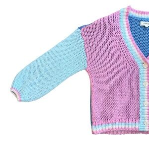 LSPACE x JVS Blue Pink White Colorblock Wool Blend Lido Oversized Cardigan M/L