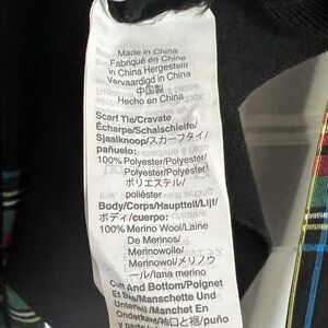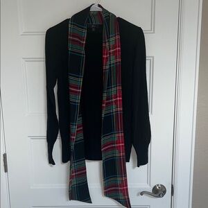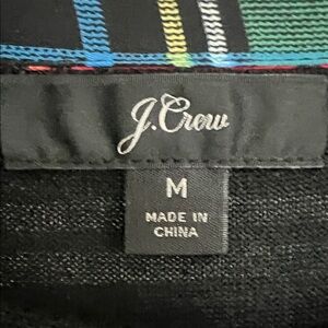 Chic black sweater by J. Crew. Features vibrant plaid details. Perfect for layering.