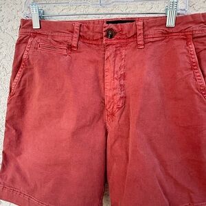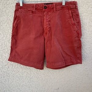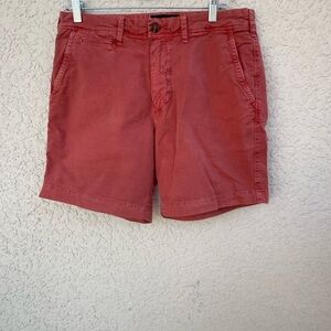 These red flat front shorts from American Eagle Outfitters offer a clean and modern look with their sturdy cotton fabric. Perfect for casual outings, they provide a comfortable fit and a stylish appearance.