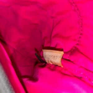 Dooney & Bourke nylon crossbody bag with embroidered duck signature style, pink interior.