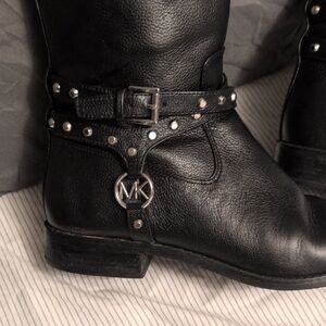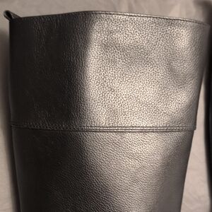 Step out in style with these elegant black leather knee-high boots with Silver Hardware. Excellent Used Condition. Perfect for any occasion, they offer both comfort and sophistication. Fits Regular Size calves