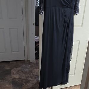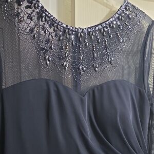 Alex Evenings Navy Blue Long Sleeve Dress with Beaded Neckline