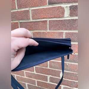 Tommy Hilfiger Blue Crossbody Bag Vinyl Double Zipper Gold Accents - EUC